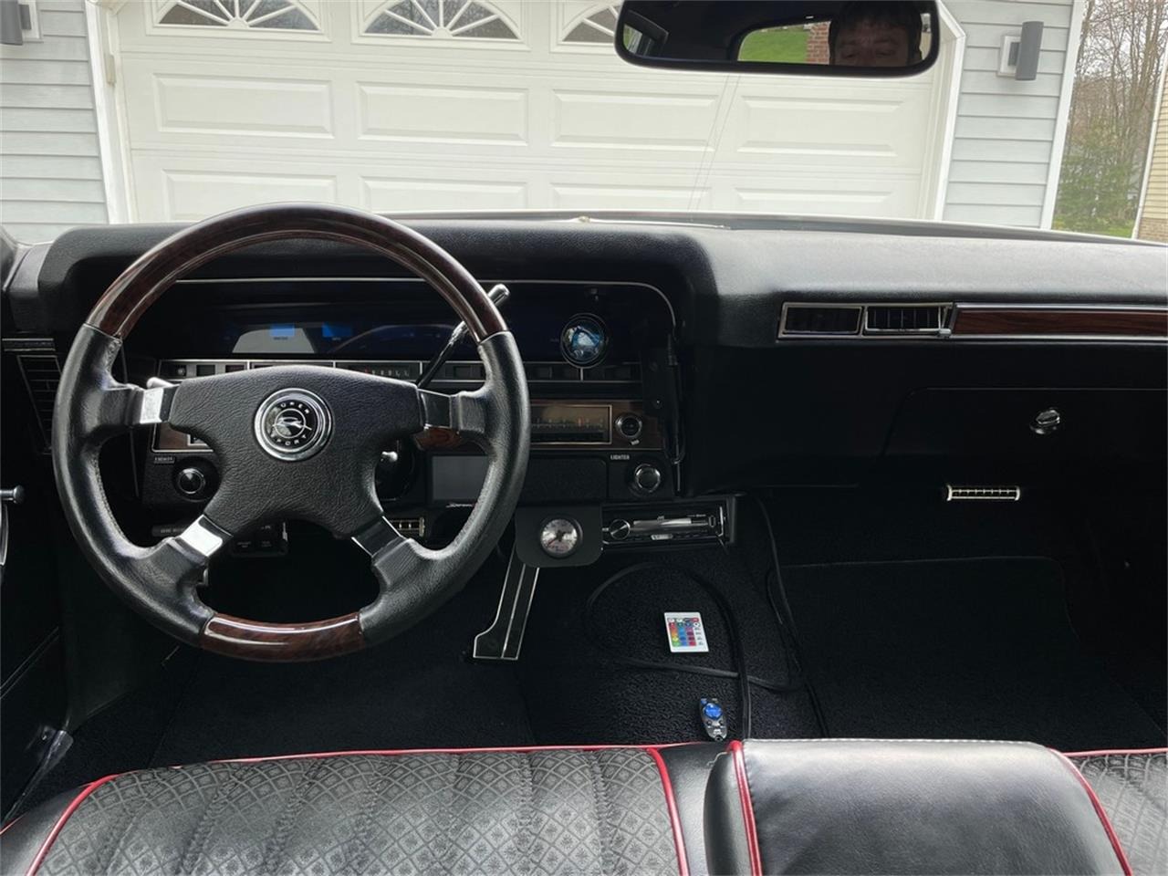 GORGEOUS INTERIOR WITH EVERYTHING IN BEAUTIFUL CONDITION INCLUDING THE SEATS, DOOR PANELS, DASH, NEWER CARPET...ETC. OPERATING LIGHTS, GAUGES, DASH LIGHTS, BLINKERS, HORN, HEAT, COLD A/C ETC... ALL WORK AS THEY SHOULD. THE SEAT UPHOLSTERY IS ORIGINAL WITH NEWER COLORED SEAT PIPING. GORGEOUS DIGITAL DASH AND TACHOMETER ALONG WITH THE HOLLEY EFI SCREEN AS WELL AS HANDS FREE BLUETOOTH. ORIGINAL RADIO WAS LEFT IN THE DASH AS WELL AS A JVC STEREO SYSTEM WITH ECHO AUDIO. TILT STEERING COLUMN WITH CUSTOM STEERING WHEEL. BACK-UP CAMERA WITH VIDEO DISPLAY IN THE REAR-VIEW MIRROR. ALL THE MODERN DAY COMFORTS AND AMENITIES! SHE TRULY RUNS DOWN THE ROAD LIKE A CADILLAC YET HAS THE PERFORMANCE OF A RACE CAR WITH THE MASSIVE 632 BIG BLOCK!